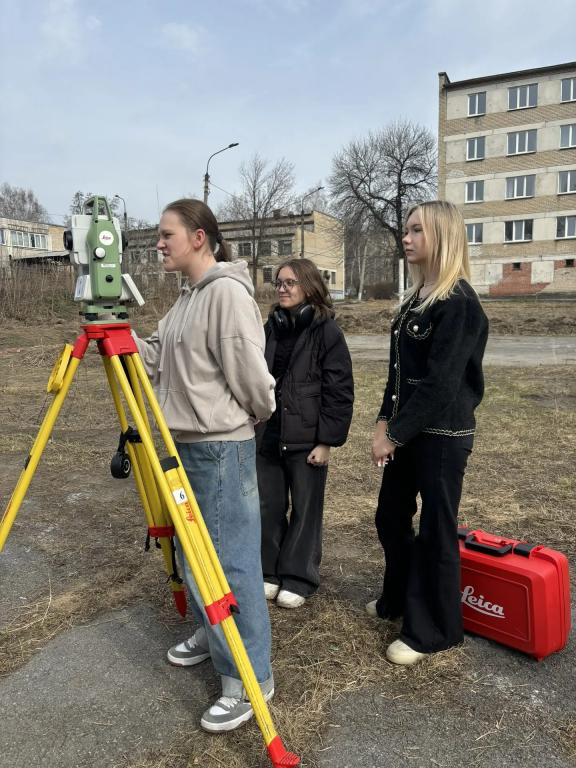 На базе мастерской «Геопространственные технологии» ребятам продемонстрировали методы производства инженерно-геодезических работ при строительстве инженерных сооружений с помощью электронного тахеометра Leica TS 07.