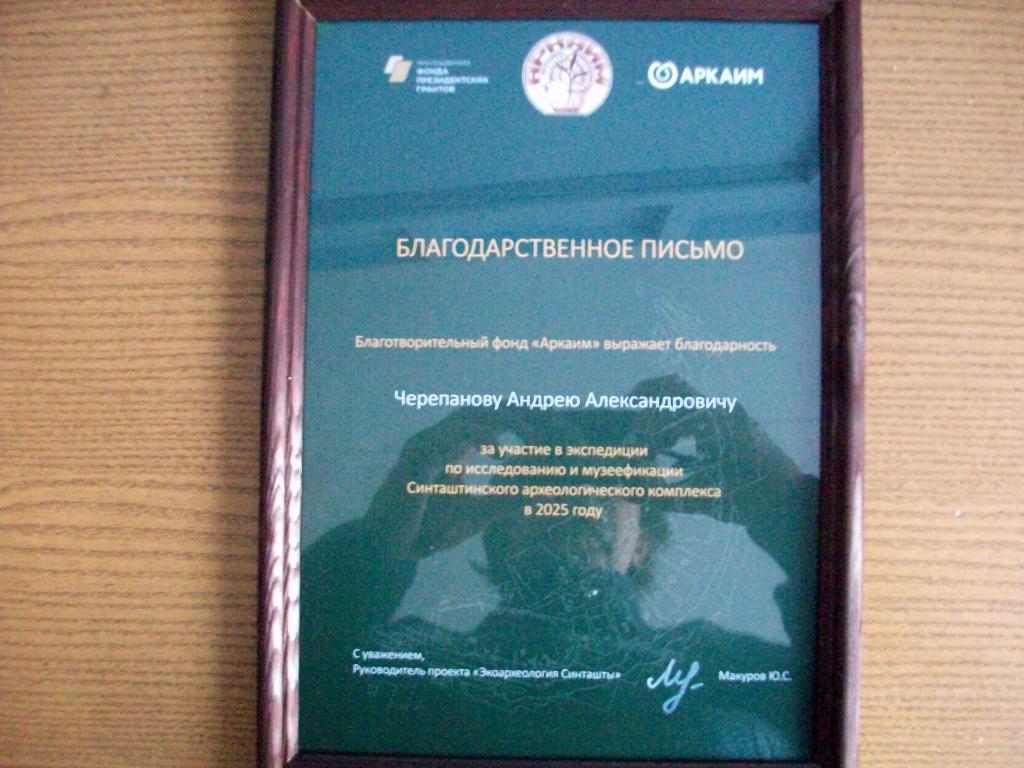 Студенты и преподаватель Транспортно-технологического комплекса Южно-Уральского многопрофильного колледжа награждены Благодарственными письмами Благотворительного фонда «Аркаим» за добросовестный труд и огромное старание во время летней археологической экспедиции по исследованию и музеефикации Синташтинского археологического комплекса. Они помогали археологам Южно-Уральского Государственного университета создавать туристический музейный центр на древнем могильнике «Синташта».