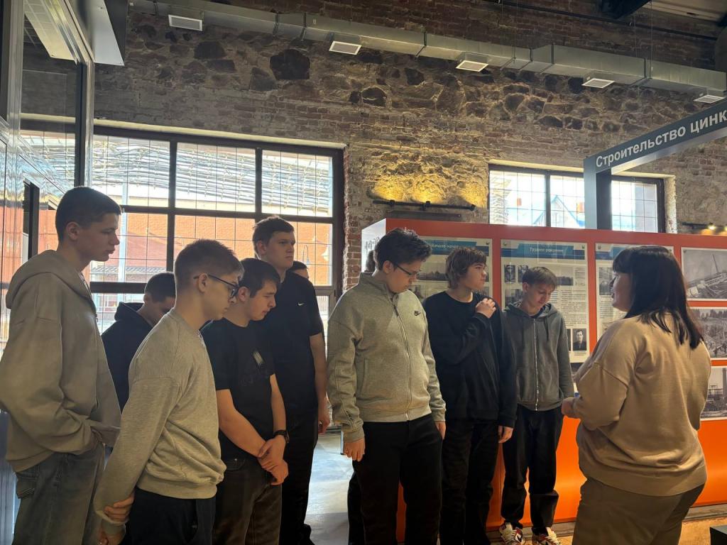 Студенты группы ТЭ-101 посетили Музей цинкового завода. Музей располагается в здании железнодорожного депо 1932 года постройки. Там сохранились и старые железнодорожные пути, которые находятся под прозрачным закаленным стеклом и конечно по нему можно ходить! Экскурсия стала увлекательным путешествием в историю промышленности региона, где студенты узнали о развитии завода с довоенных лет и до современности. Показ фильма о предприятии – стал первой точкой путешествия.