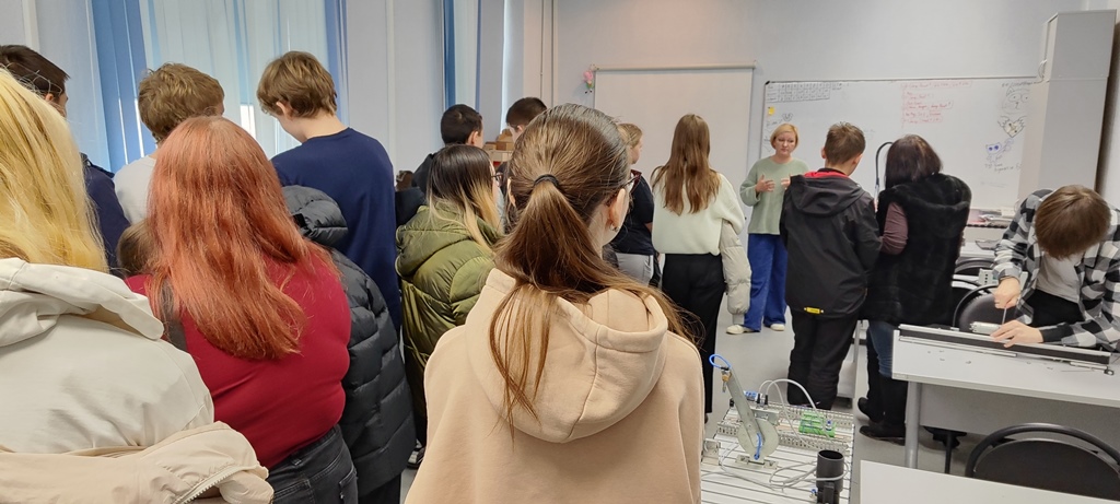 16 школьников посетили лаборатории колледжа, где узнали о ключевой роли робототехники в экономике страны и о современных трендах в отрасли. Преподаватели ответили на самые актуальные вопросы ребят: о поступлении, сроках обучения, уровне зарплат и карьерных перспективах.