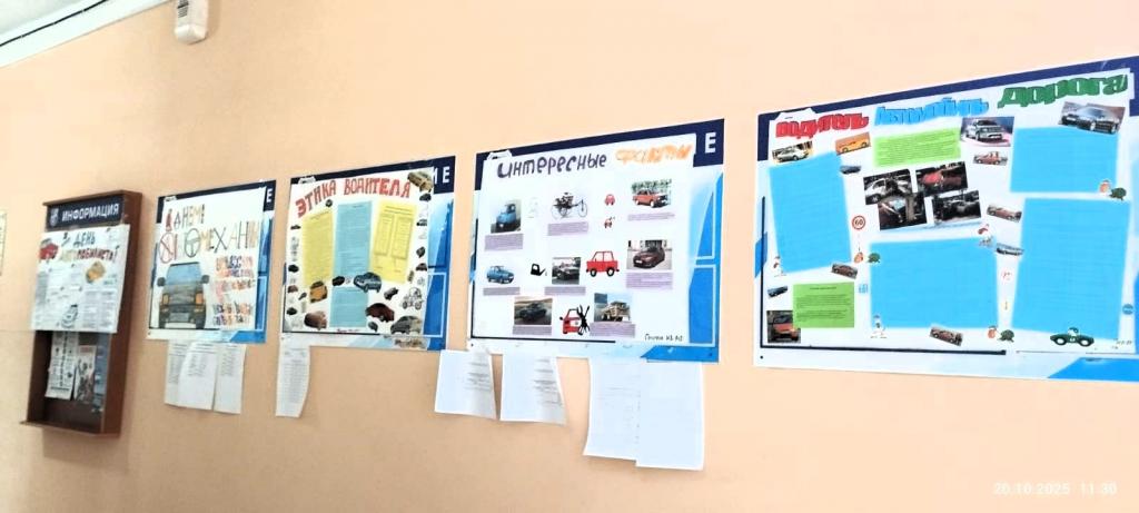 Открытие недели профессии началось на линейке, на которой были оглашены все запланированные мероприятия. К этому дню обучающиеся подготовили стенгазеты, посвященные Дню автомобилиста.