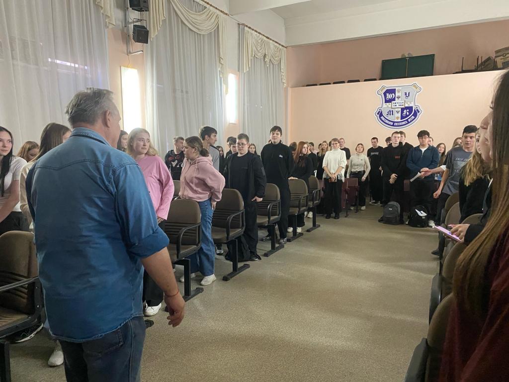 Стараясь уберечь новое поколение от ошибок и пагубных пристрастий, он рассказывал о личном опыте и прошлом края, настоящих людях, о которых забывать просто нельзя. Также Владимир Александрович поделился переживаниями о своем сыне, который принимает сейчас участие в Специальной военной операции. Очень растрогала студентов часть встречи, когда В.А. Вафин и студенты колледжа выражали благодарность тем, чьи родные и близкие принимали и принимают участие в Специальной военной операции.
