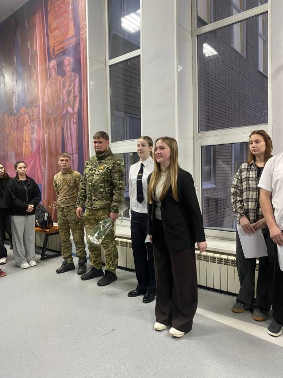 Сегодня, 8 декабря, на кануне Дня Героев Отечества, на линейку с поднятием государственного флага Российской Федерации были приглашены участники СВО. Дмитрий (позывной «Демон») в 2023-2024 годах проходившие службу в добровольческом формировании, выполнял задачи в ЛНР и ДНР. Александр (позывной «Шпеда») в 2022-2023 годах отслужил две командировки в добровольческом формировании и с 2023 года служил по контракту.