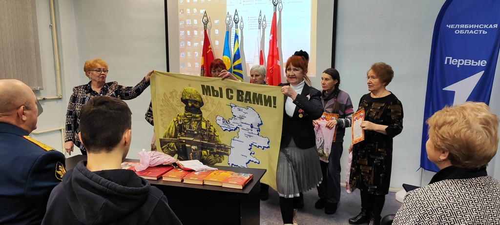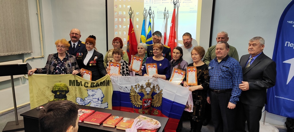 Председатель Совета ветеранов Металлургического района Мущинкина Л. Г. вручила Благодарственные письма и ценные подарки волонтёрам во главе со старшим прапорщиком, ветераном Вооруженных Сил России Аглушевич Ниной Анатольевной за большую постоянную помощь нашим землякам, бойцам СВО.