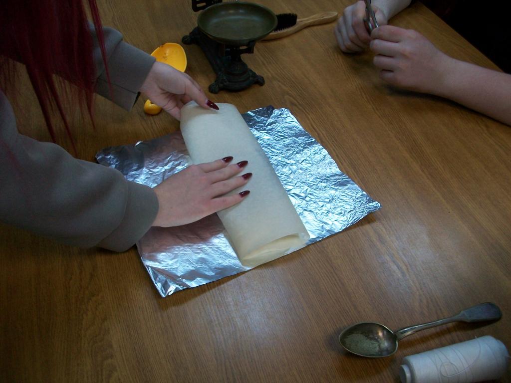 А, самое главное, ребята, как когда-то их ровесники, самостоятельно развешивали на весах чай, самостоятельно упаковывали его в брикеты. При этом они пользовались образцами оригинальных чайных этикеток начала XX века и панорамной фотографией чаеразвесочной фабрики Колокольникова, на которой последовательно изображены этапы упаковки чая. Специально для этого урока в архиве были подготовлены старинные весы, соответствующая упаковочная бумага, фольга, копии чайных этикеток. Урок закончился чаепитием из настоящего самовара.