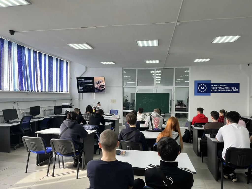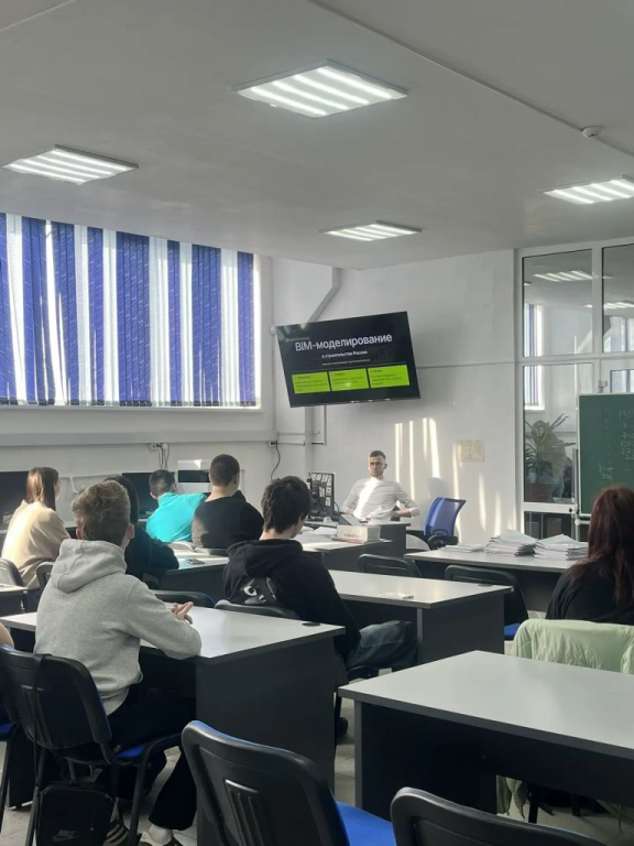 Сергей Анатольевич провел два открытых урока, где рассказал студентам, что такое BIM моделирование, какие бывают уровни проработки и детализации в модели, что такое коллизии и как их устранять, какое бывает программное обеспечение, а так же как развивается это направление сейчас в России. Показал примеры разработанных моделей гражданских и промышленных зданий.
