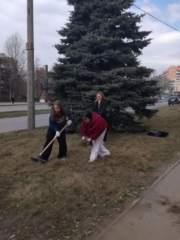 Студенты и классные руководители дружно вышли на уборку территории. Атмосфера была по-настоящему рабочей и воодушевляющей — вместе мы делаем наш район чище и уютнее!