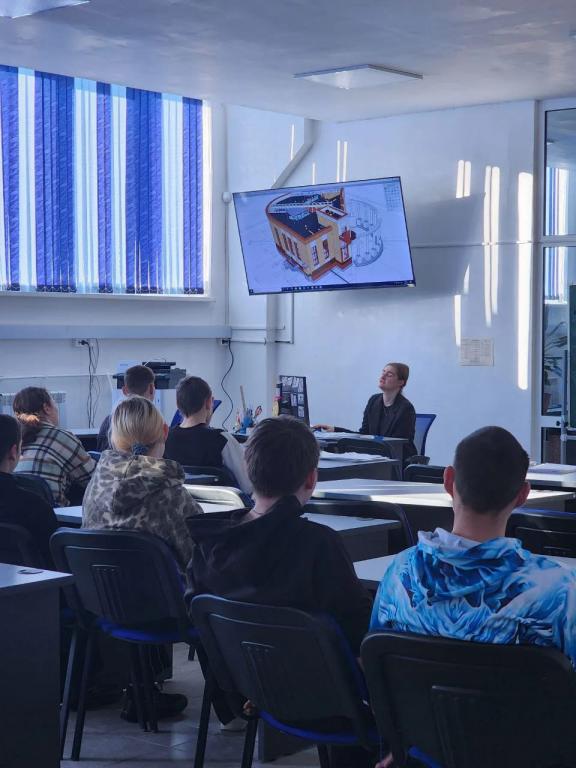 Преподаватель рассказала ребятам о ключевых преимуществах BIM (Building Information Modeling) — технологии информационного моделирования зданий. Было отмечено, что BIM позволяет не только значительно повысить точность проектирования и строительства, но и оптимизировать процесс эксплуатации объектов, а также улучшить взаимодействие между всеми участниками проекта: архитекторами, инженерами, строителями и заказчиками. Такой подход помогает снизить количество ошибок, ускорить сроки реализации и сократить затраты на всех этапах жизненного цикла здания.